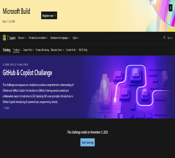 Dates – 21st April 2024 to 5th May 2024The Azure AI Fundamentals Challenge! Explore diverse AI tools, streamline model building, conquer image tasks with powerful computer vision, and master advanced NLP.No of Participants – 50