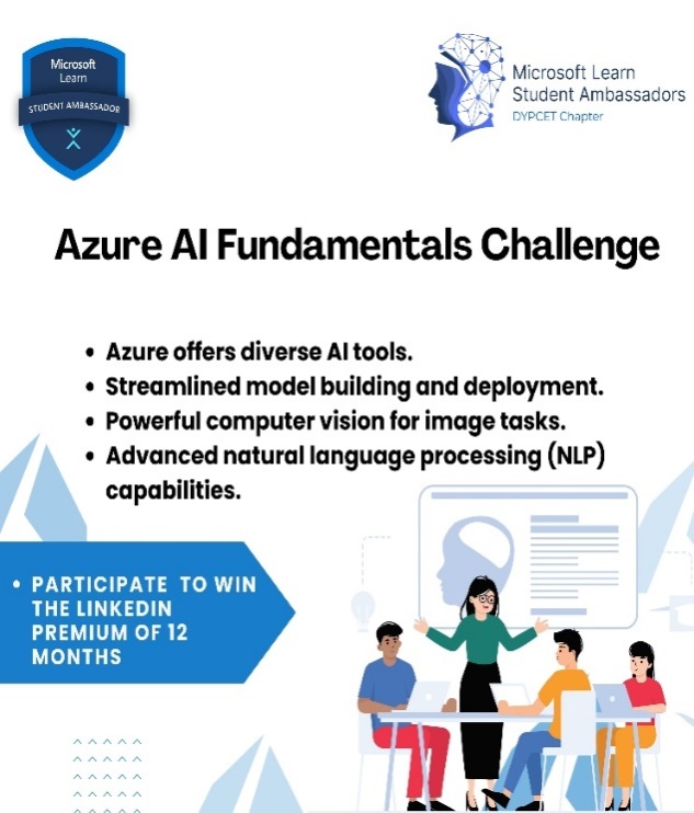 Microsoft Learn Student Ambassadors (MLSA) Chapter at D Y Patil College of Engineering and Technology – a dynamic initiative empowering students to lead in their communities. Our chapter is a vibrant platform fostering leadership, technical excellence, and community engagement. Committed to promoting Microsoft technologies, we aim to create a lasting impact in both our college and the broader educational ecosystem