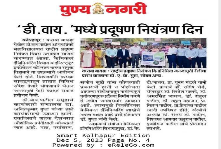 Description about activity – On Occasion of National Pollution Control Day Department of Chemical Engineering organized rally on 4th Dec. 2023. The Theme of this event was Sustainable Development for a Clean and Healthy Planet.