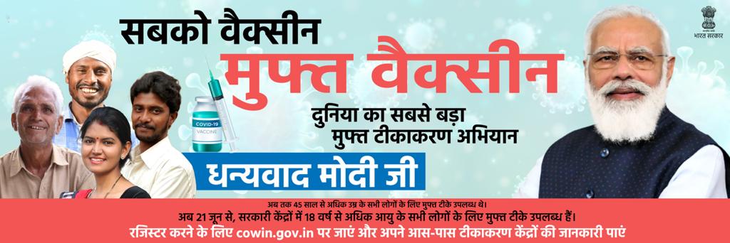 Free vaccination for 18-44 years age group is starting from 21 June 2021.