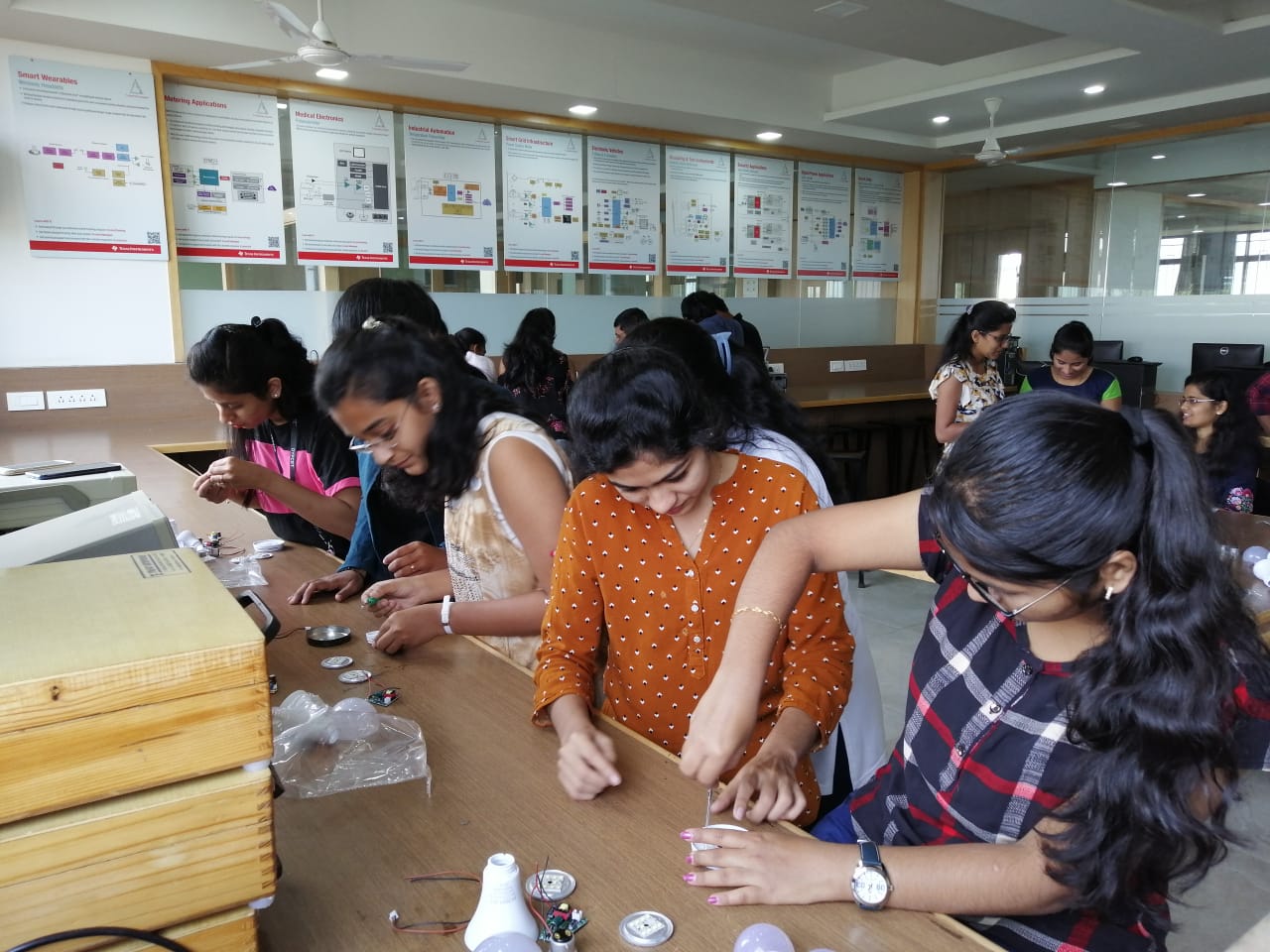 Department of Electronics and Telecommunication Engineering had organized Two days workshop on “LED Inverter bulb”. The theme of the workshop was to teach students about LED bulb manufacturing process, Start-up Ideas, Business Ideas for Entrepreneurs, Startup Business Opportunities in India, entrepreneurship projects, Make in India and its advantages Today, LED lights have become inseparable part of life. People use it as these are extremely economical and energy-efficient. This has brought a revolutionary change in the lives of people. The complete energy-efficient LED bulbs have made life simpler. These durable and Eco-friendly bulbs are overtaking the incandescent bulbs very quickly. India, being the second-most populous country in the world and fifth major electricity consumer, has been experiencing an ever-widening demand-supply gap in electricity. Consequently, the market for energy-efficient products such as LED lights is bound to grow. At the end of workshop students developed their own LEDs. It was coordinated by Mr.Sakib. R. Mujawar and Mr. Samrat C. Shinde along with student team. 280 Beneficiary participated in the workshop.